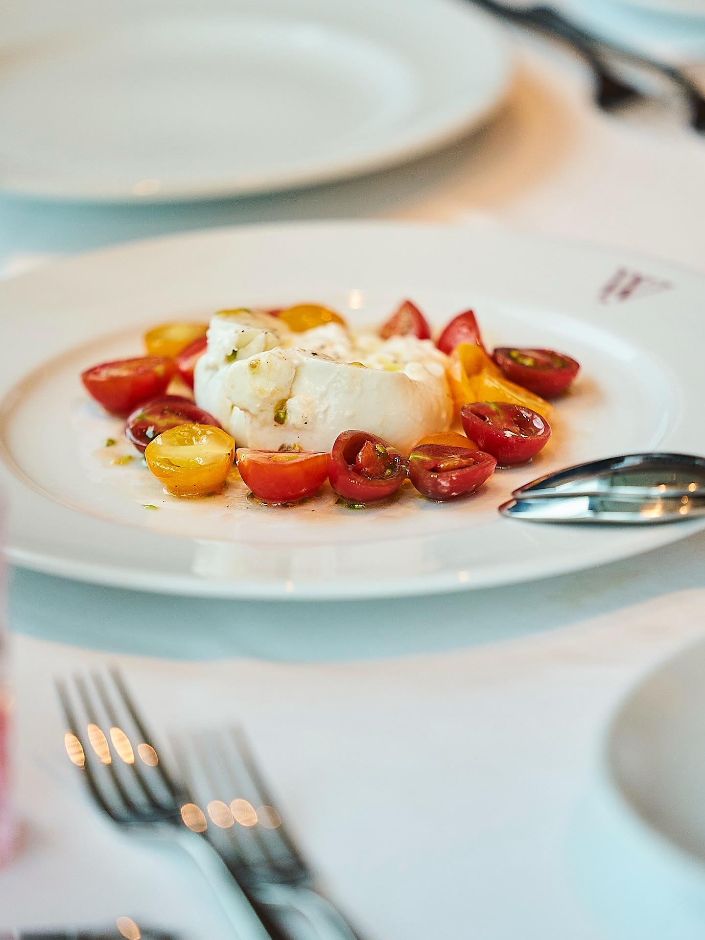 とろけるブッラータチーズとミニトマトが織りなす、贅沢なサラダ。